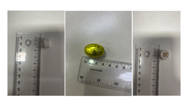 Images of plastic found inside one the of the solid chocolate eggs distributed over the weekend of Saturday 21 and Sunday 22 March 2026.